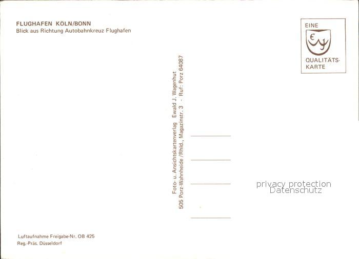 Lufthansa Flughafen Koeln-Bonn Autobahnkreuz Fliegeraufnahme postalisch nicht gelaufen Erhaltung siehe scans