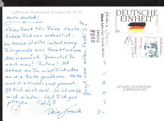 alte Postkarte Lufthansa Mc Donnell Douglas DC 10-30 postalisch gelaufen Erhaltung siehe scans
