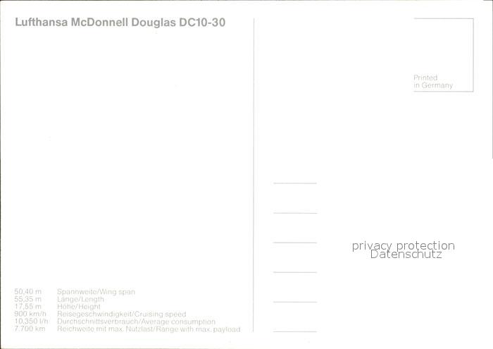 Lufthansa McDonnell Douglas DC10-30 postalisch nicht gelaufen Erhaltung siehe scans