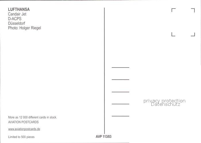 Lufthansa Star Alliance Candair Jet D-ACPS postalisch nicht gelaufen Erhaltung siehe scans