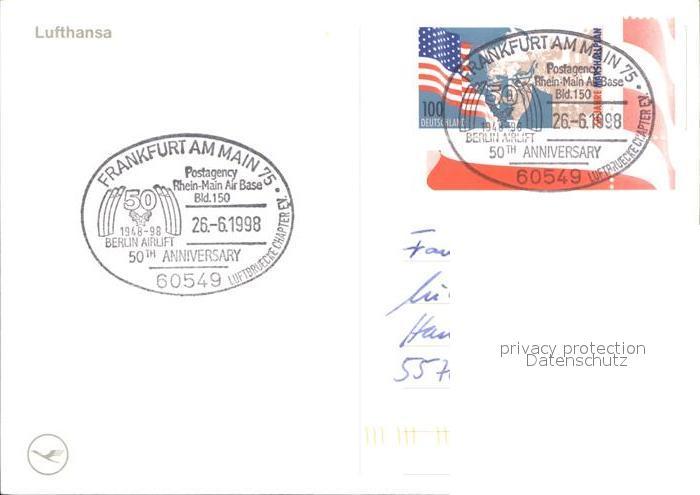 alte Postkarte Lufthansa Stempel 50. Jubilaeum Berlin Airlift postalisch gelaufen Erhaltung siehe scans
