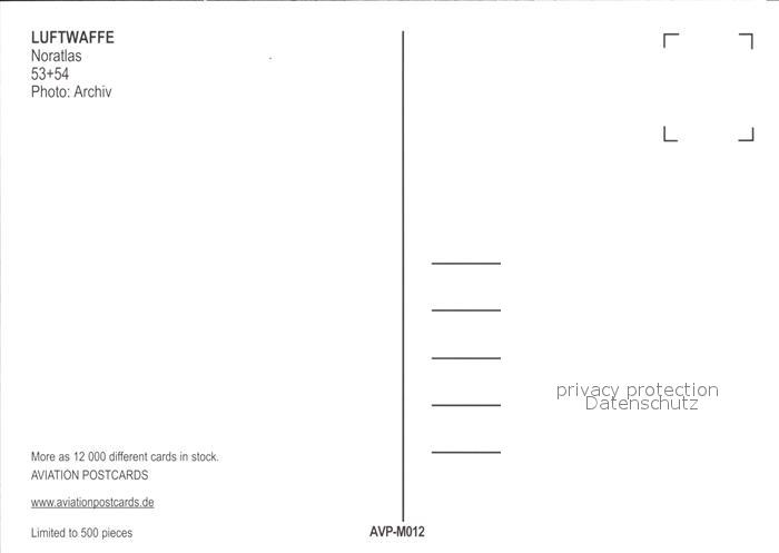 Luftwaffe Noratlas 53+54 postalisch nicht gelaufen Erhaltung siehe scans