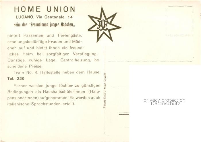 13822671 Lugano Lago di Lugano TI Home Union Heim der Freundinnen junger Maedchen postalisch nicht gelaufen Erhaltung siehe scans [FriedD77] KatCode: 11470210665262
