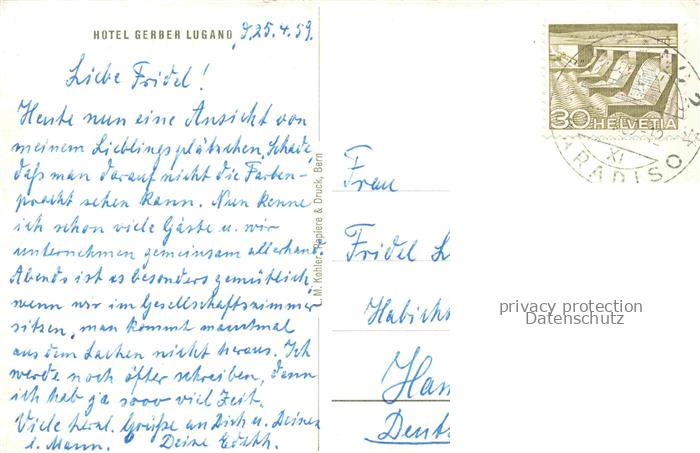 34142585 LUGANO Lago di Lugano TI Hotel Gerber Terrasse mit Seeblick postalisch gelaufen Erhaltung siehe scans [WerneD78] alte Postkarte Wern Katcode 11470210665262