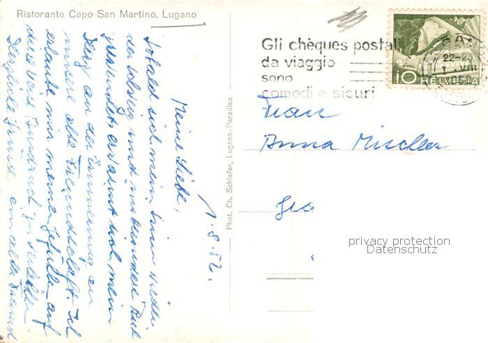 13806752 alte Postkarte Lugano Lago di Lugano TI Restaurant Capo San Martino postalisch gelaufen Erhaltung siehe scans [LiesaD40] KatCode: 11470210665262