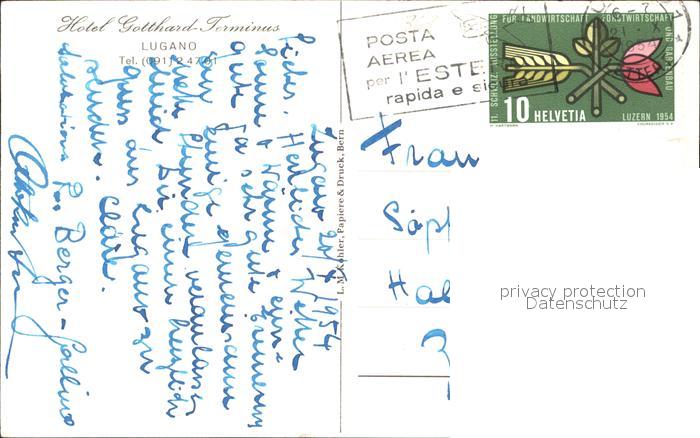 11739376 alte Postkarte Lugano TI Hotel Gotthard-Terminus postalisch gelaufen KatCode: 11470210665262