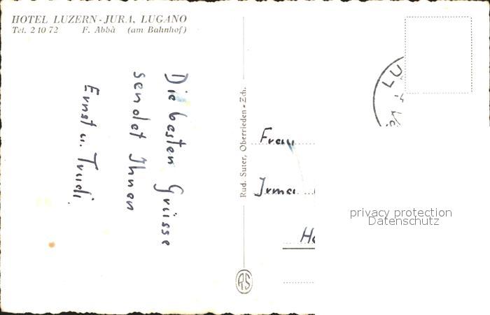 11739381 alte Postkarte Lugano TI Hotel Luzern postalisch gelaufen Erhaltung siehe scans KatCode: 11470210665262