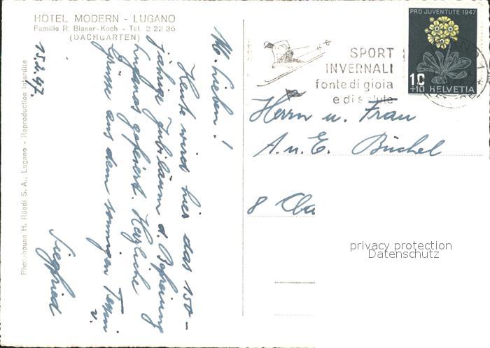 11643836 alte Postkarte Lugano TI Hotel Modern Terrasse postalisch gelaufen Erhaltung siehe scans KatCode: 11470210665262