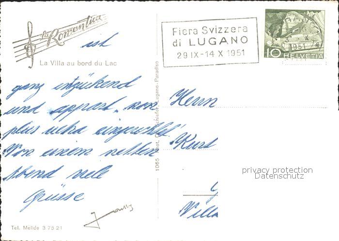 11644022 alte Postkarte Lugano TI La Villa au bord du Lac postalisch gelaufen Erhaltung siehe scans KatCode: 11470210665262