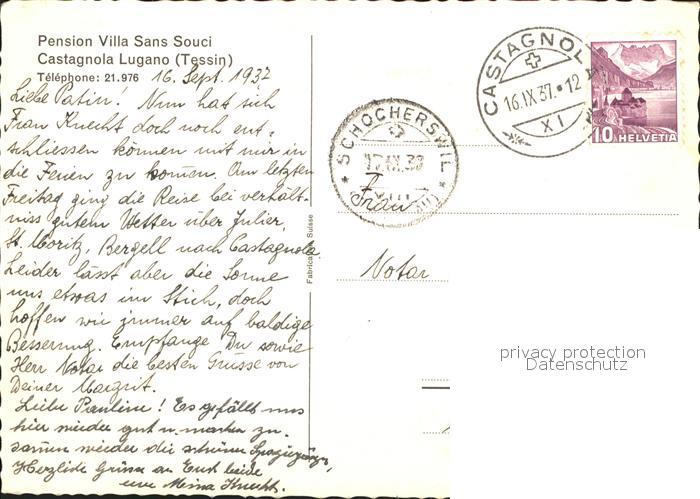 11637005 alte Postkarte Lugano TI Pension Villa Sans Souci postalisch gelaufen Erhaltung siehe scans KatCode: 11470210665262