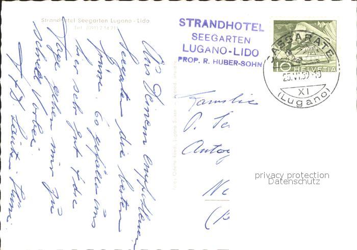 11637027 alte Postkarte Lugano TI Strandhotel Seegarten postalisch gelaufen Erhaltung siehe scans KatCode: 11470210665262