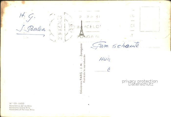 old postcard Lugo Panoramica del Rio Mino postalisch gelaufen Erhaltung siehe scans