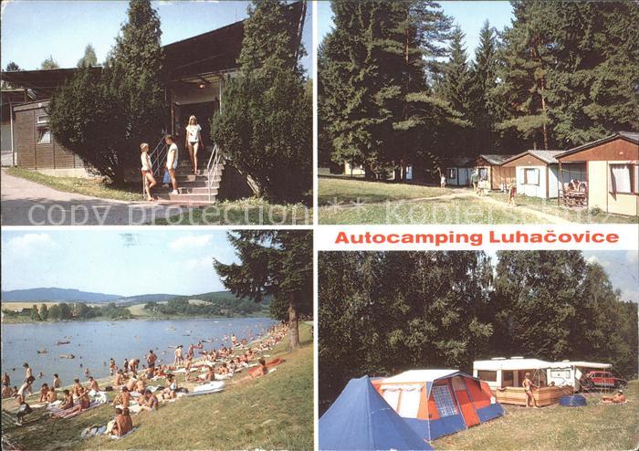 old postcard Luhacovice Autocamping Strand Bungalows postalisch gelaufen Erhaltung siehe scans