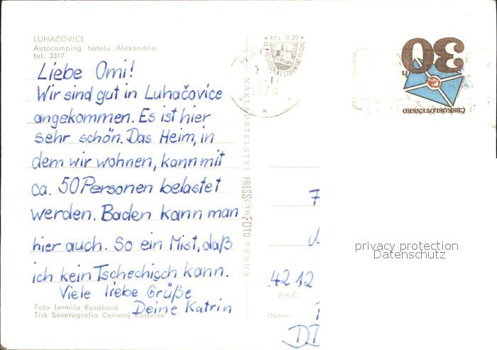 old postcard Luhacovice Camping Bootssteg postalisch gelaufen Erhaltung siehe scans