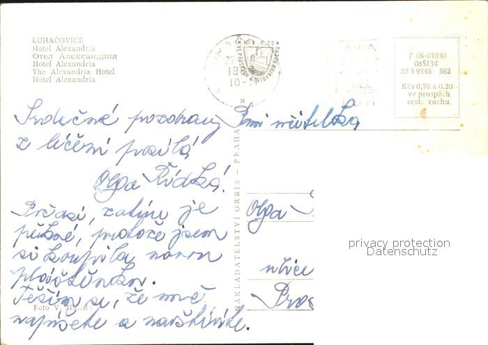 old postcard Luhacovice Hotel Alexandria postalisch gelaufen Erhaltung siehe scans