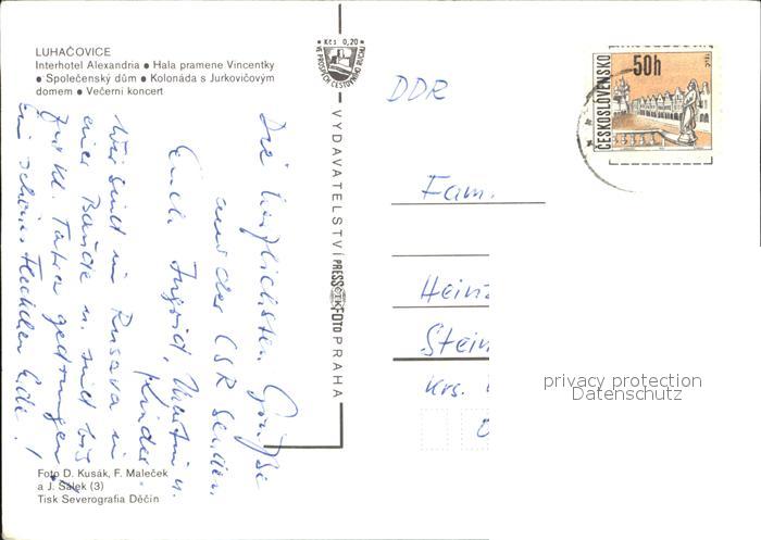 old postcard Luhacovice Interhotel Alexandria postalisch gelaufen Erhaltung siehe scans