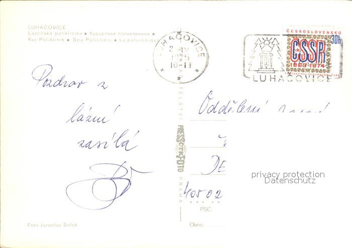old postcard Luhacovice Kur-Poliklinik postalisch gelaufen Erhaltung siehe scans