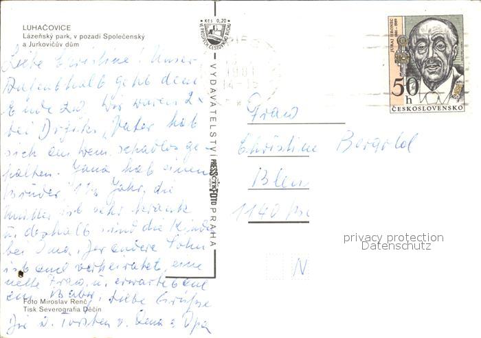 old postcard Luhacovice Lazensky Park postalisch gelaufen Erhaltung siehe scans