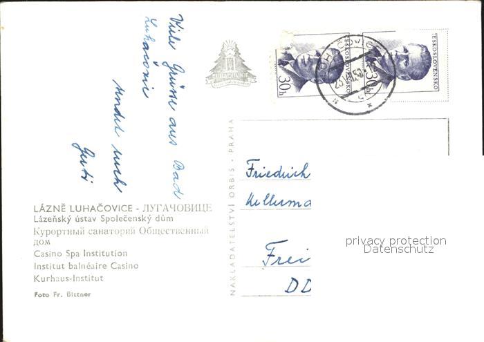 old postcard Luhacovice Lazne Kurhaus postalisch gelaufen Erhaltung siehe scans