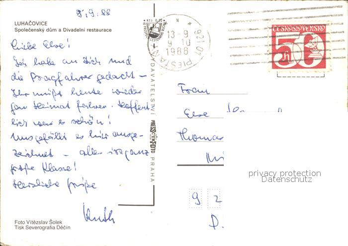 old postcard Luhacovice Restaurant Divadelni postalisch gelaufen Erhaltung siehe scans