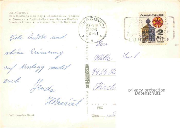 74085027 old postcard Luhacovice Uhersky Brod CZ Dum Bedricha Smetany postalisch gelaufen Erhaltung siehe scans [WerneD78] KatCode: 11520