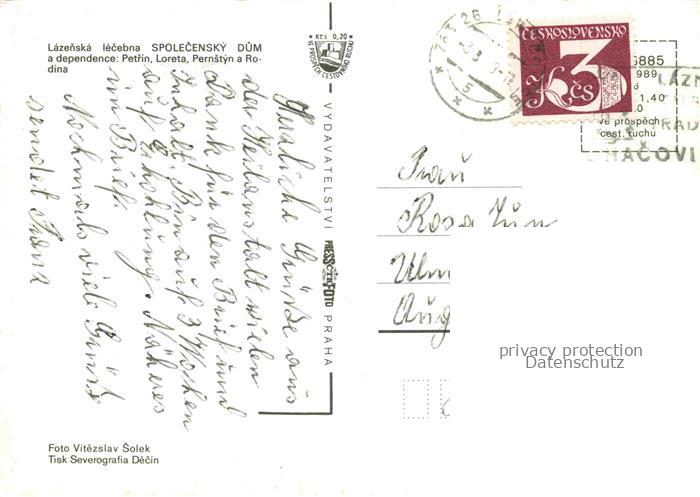 74137806 old postcard Luhacovice Uhersky Brod CZ Lazenska lecebna Spolcensky Dum a dependence Petrin Loreta Pernstyn a Rodina postalisch gelaufen Erhaltung siehe scans [WerneD78] KatCode: 11520