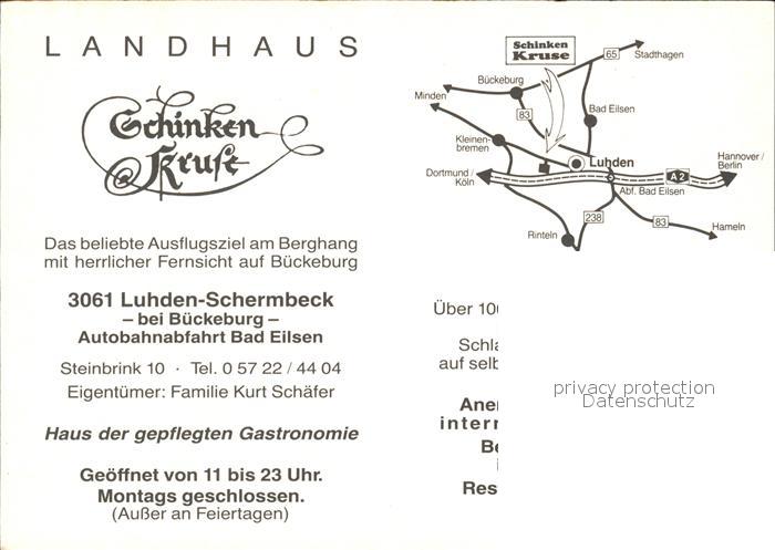 72598559 Luhden Landhaus Schinken-Kruse postalisch nicht gelaufen Werbekarte (keine Postkarte) Erhaltung siehe scans [LiesaD40] KatCode: 11110003257022