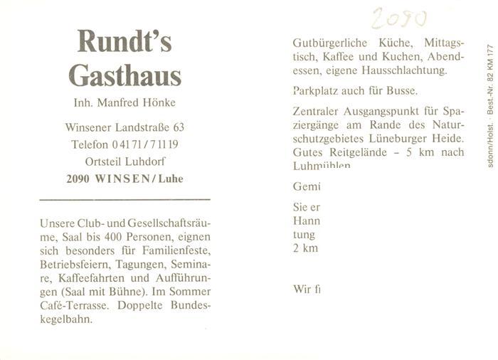 73884838 Luhdorf Rundts Gasthaus postalisch nicht gelaufen Werbekarte (keine Postkarte) Erhaltung siehe scans [FriedD77] KatCode: 11110003353040