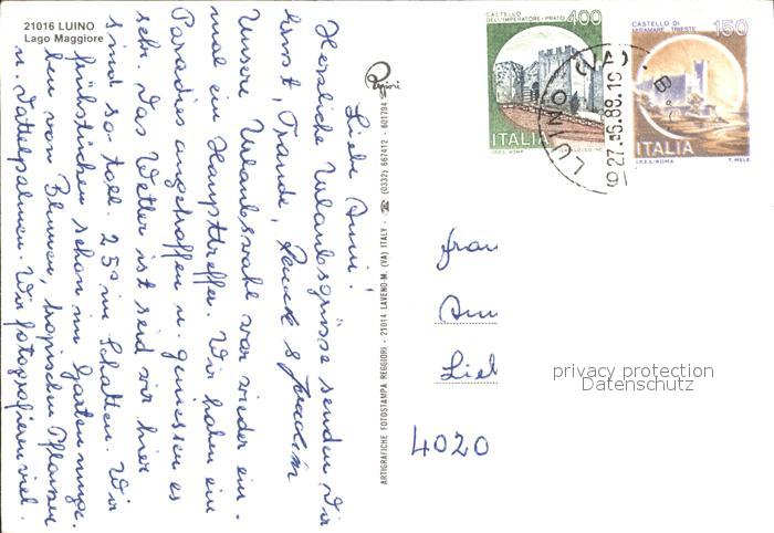 old postcard Luino Anlegestelle Markt Fliegeraufnahme postalisch gelaufen Erhaltung siehe scans