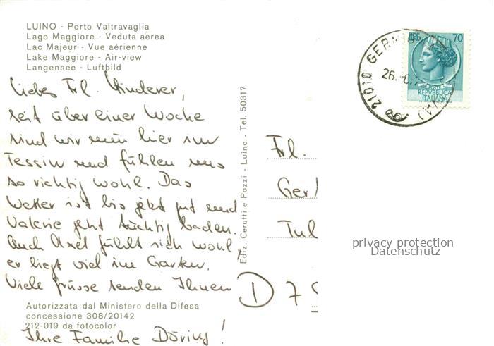74079538 old postcard Luino Lago Maggiore IT Porto Valtravaglia veduta aerea postalisch gelaufen Fliegeraufnahme Erhaltung siehe scans [FriedD77] KatCode: 11240