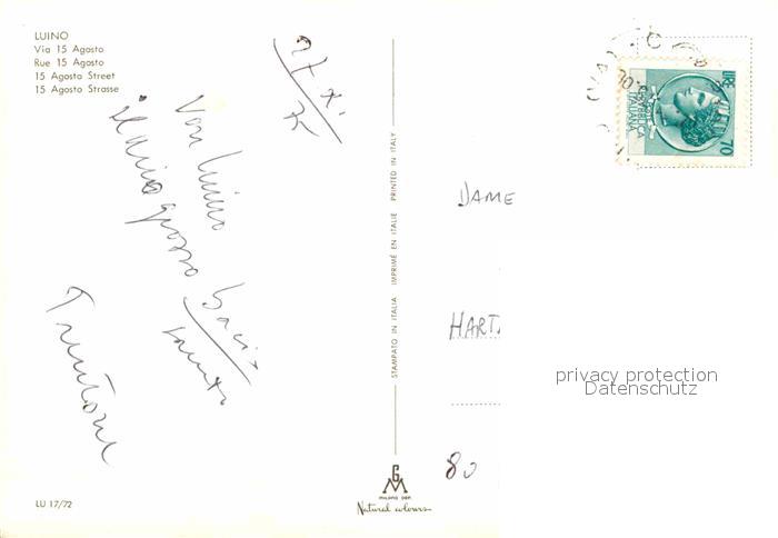 old postcard Luino Lago Maggiore Via 15 Agosto postalisch gelaufen Erhaltung siehe scans [LiesaD40]