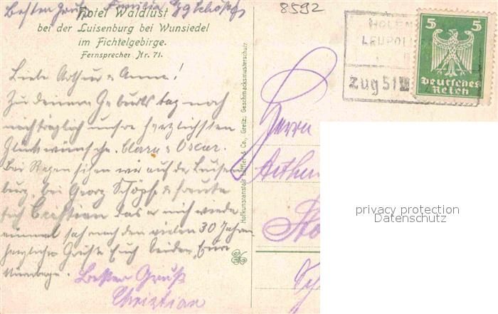 42685342 alte Postkarte Luisenburg Hotel Waldlust postalisch gelaufen Erhaltung siehe scans [AndreD76] KatCode: 11110009479169