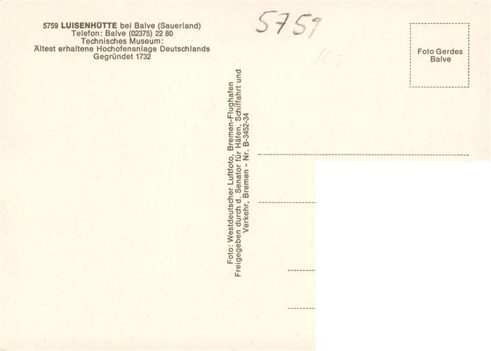 73869810 Luisenhuette Balve NRW Technisches Museum aeltest erhaltene Hochofenanlage Deutschlands 18. Jhdt. postalisch nicht gelaufen Fliegeraufnahme Erhaltung siehe scans [FriedD77] Fliegeraufnahme Frie Katcode 11110005962008