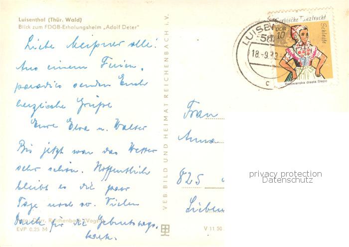 73753118 alte Postkarte Luisenthal FDGB Erholungsheim Adolf Deter postalisch gelaufen Erhaltung siehe scans [WerneD78] KatCode: 11110016067044