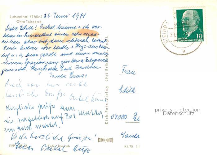 72894988 alte Postkarte Luisenthal Ohra Talsperre postalisch gelaufen Erhaltung siehe scans [KathaD81] KatCode: 11110016067044