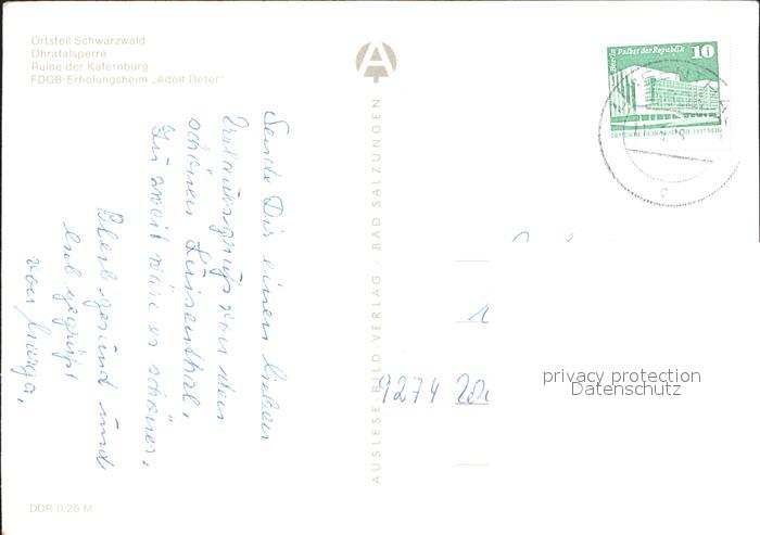 72289504 alte Postkarte Luisenthal Ohratalsperre Ruine Kaefernburg postalisch gelaufen Erhaltung siehe scans KatCode: 11110016067044