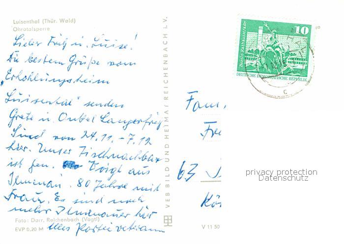 72636822 alte Postkarte Luisenthal Ohratalsperre Sperrmauer Stausee postalisch gelaufen Erhaltung siehe scans [FriedD77] KatCode: 11110016067044