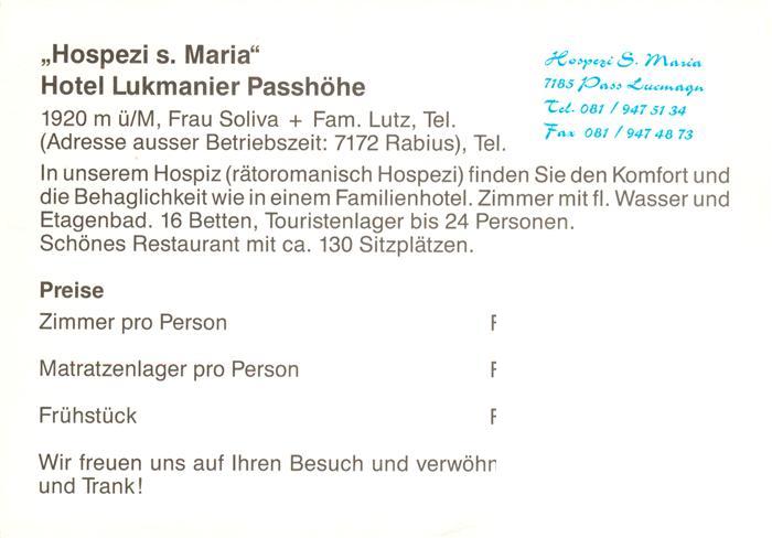13880818 Lukmanierpass 1916m Lucomagno TI Hospezi S Maria postalisch nicht gelaufen Werbekarte (keine Postkarte) Erhaltung siehe scans [WerneD78] KatCode: 11470360635900