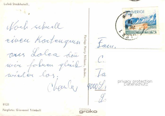 old postcard Lulea Stadshotell Hotel postalisch gelaufen Erhaltung siehe scans [FriedD77]