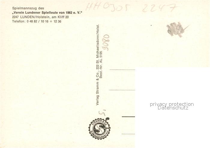 73643675 Lunden Holstein Spielmannszug des Vereins Lundener Spielleute von 1962 Details postalisch nicht gelaufen Erhaltung siehe scans [WerneD78] KatCode: 11110001051071