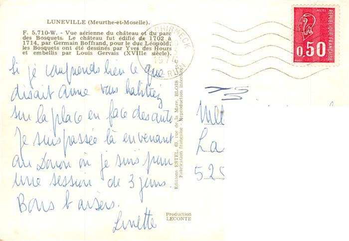 13948529 Luneville 54 Meurthe-et-Moselle Vue aérienne du château Parc des Bosquets postalisch gelaufen Fliegeraufnahme Erhaltung siehe scans [FriedD77] Fliegeraufnahme carte postale Frie Katcode 11170054254329
