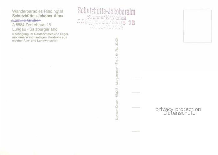 72915033 Lungau Wanderparadies Riedingtal Schutzhuette Jakober Alm postalisch nicht gelaufen Erhaltung siehe scans [LiesaD40] KatCode: 11390321050510