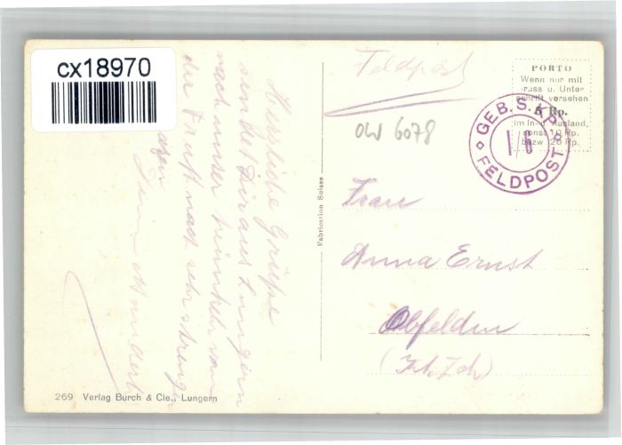 10723633 alte Postkarte Lungern postalisch gelaufen KatCode: 11470150440308
