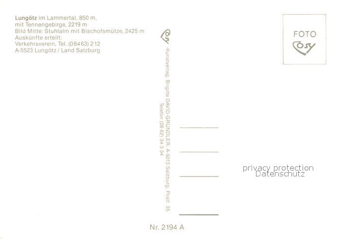 73626123 Lungoetz Annaberg mit Tennengebirge Stuhlalm mit Bischofsmuetze Badestrand Berghuette postalisch nicht gelaufen Erhaltung siehe scans [FriedD77] KatCode: 11390323050203