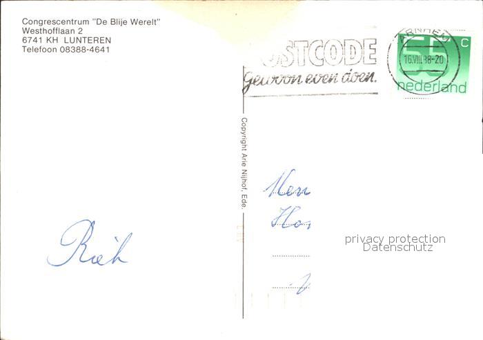 old postcard Lunteren Congrescentrum Blije Werelt postalisch gelaufen Erhaltung siehe scans