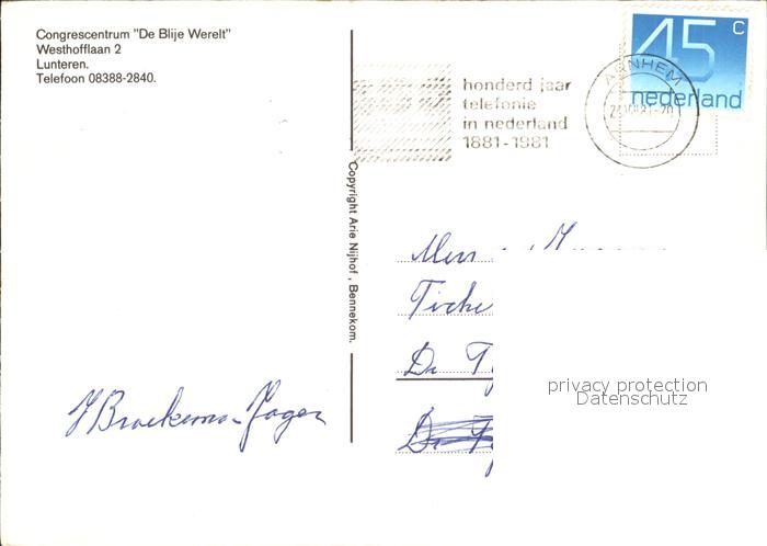 old postcard Lunteren Congrescentrum De Blije Werelt postalisch gelaufen Erhaltung siehe scans