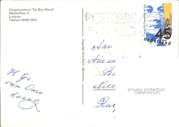 old postcard Lunteren Hoofdgebouw Congrescentrum postalisch gelaufen Erhaltung siehe scans