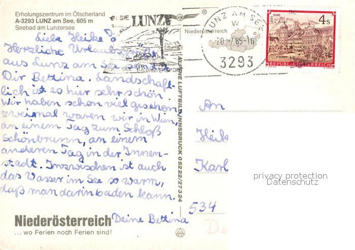 72942998 alte Postkarte Lunz See Niederoesterreich Fliegeraufnahme postalisch gelaufen Erhaltung siehe scans [KathaD81] KatCode: 11390121032005