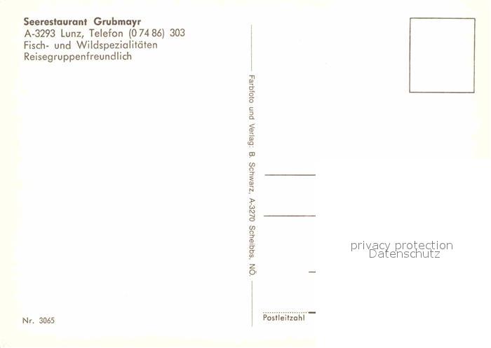 72714494 Lunz See Niederoesterreich Seerestaurant Grubmayr Segelboot postalisch nicht gelaufen Erhaltung siehe scans [FriedD77] KatCode: 11390121032005