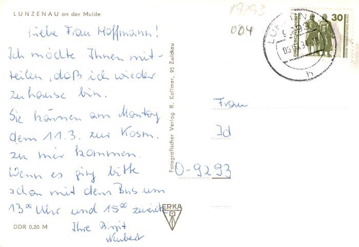 73907757 alte Postkarte Lunzenau An der Mulde postalisch gelaufen Erhaltung siehe scans [FriedD77] KatCode: 11110014182260